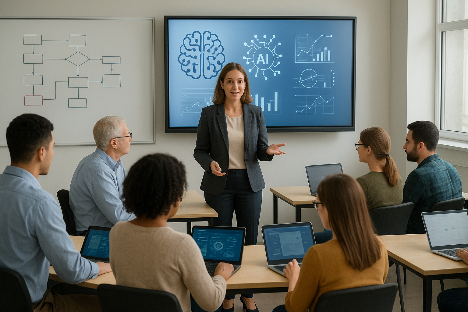 Das Projekt treibt die digitale Transformation in Bildung, Pflege und Verwaltung voran. Es vermittelt praxisorientiertes Wissen über den Einsatz von Künstlicher Intelligenz und Automatisierung.